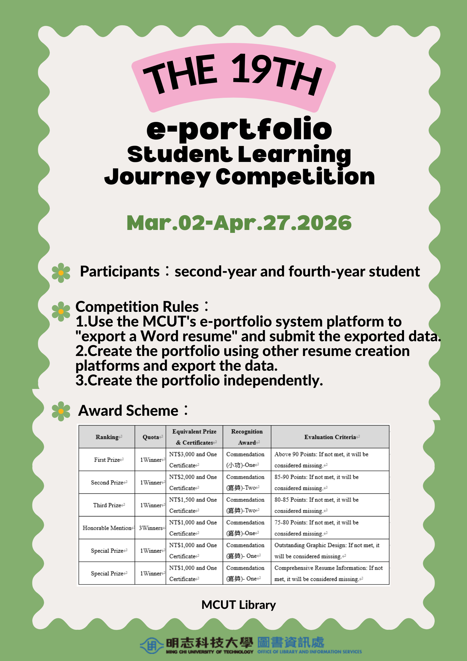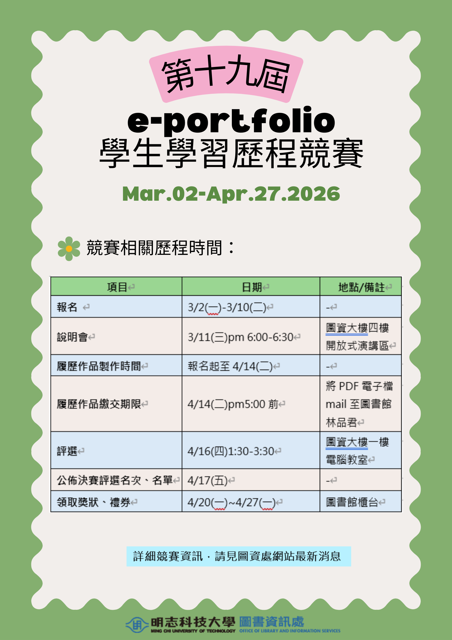 【圖書館】第十九屆e-portfolio競賽登場,歡迎報名參加!